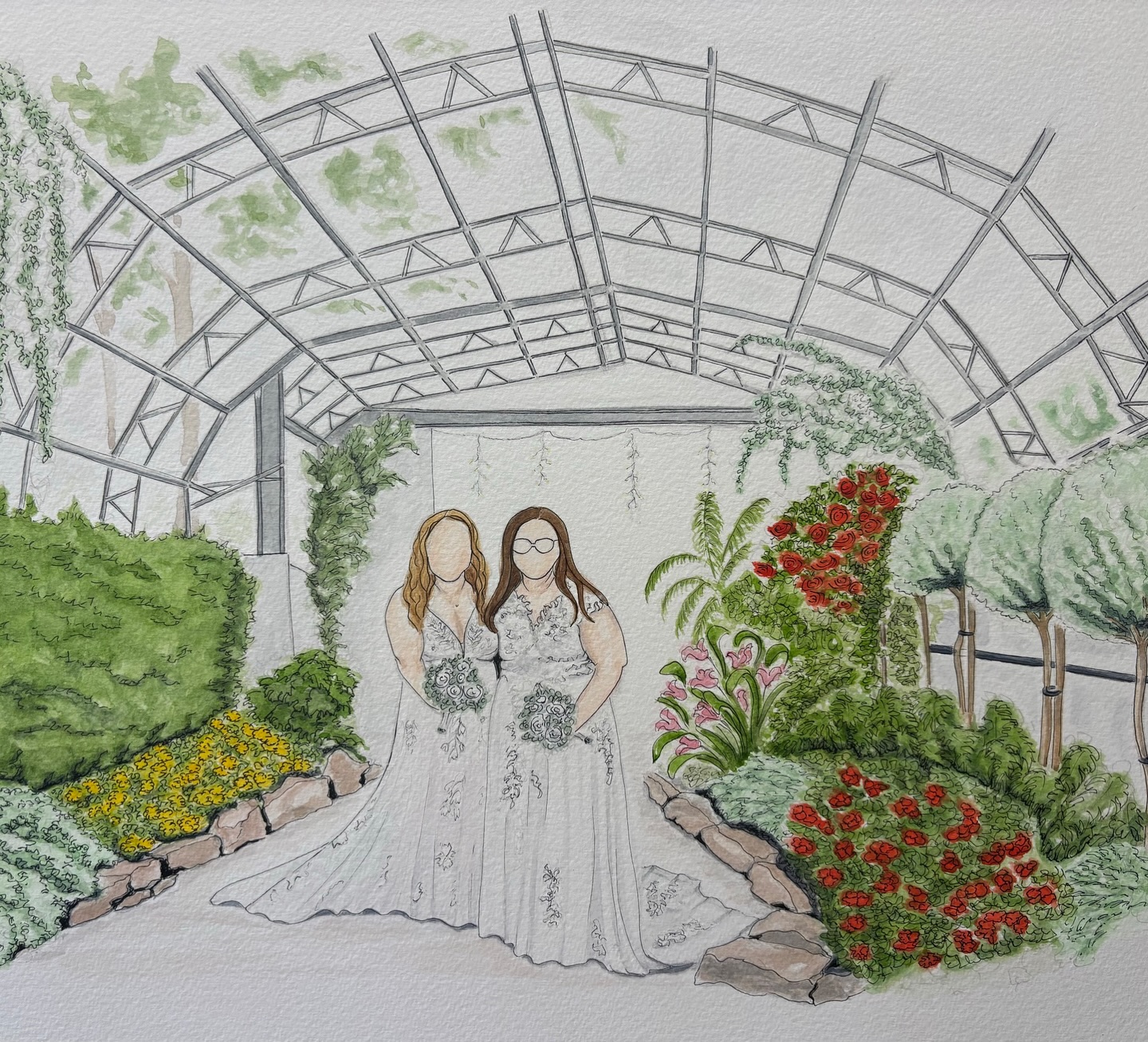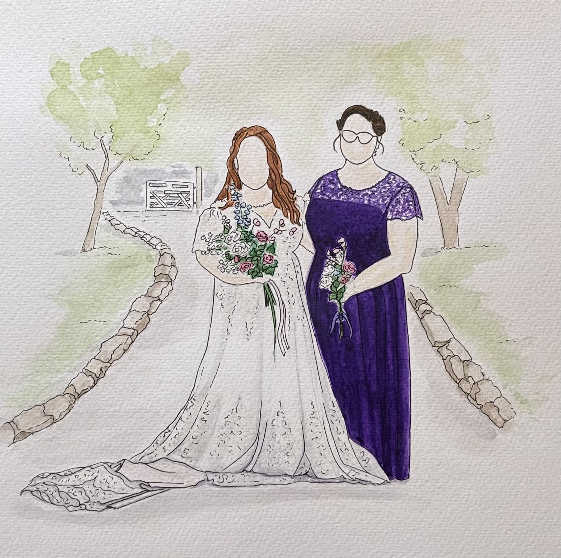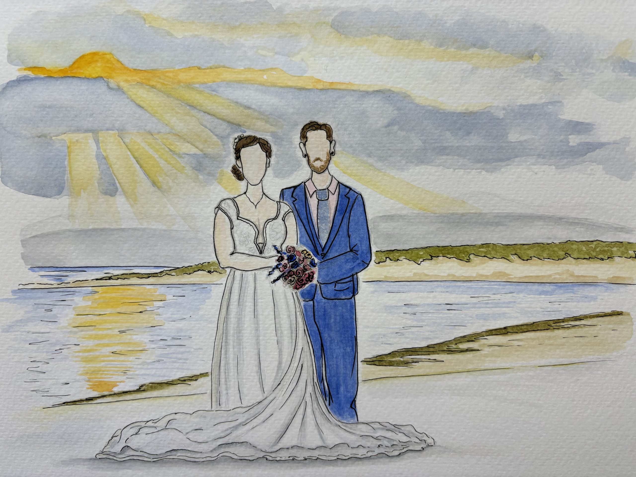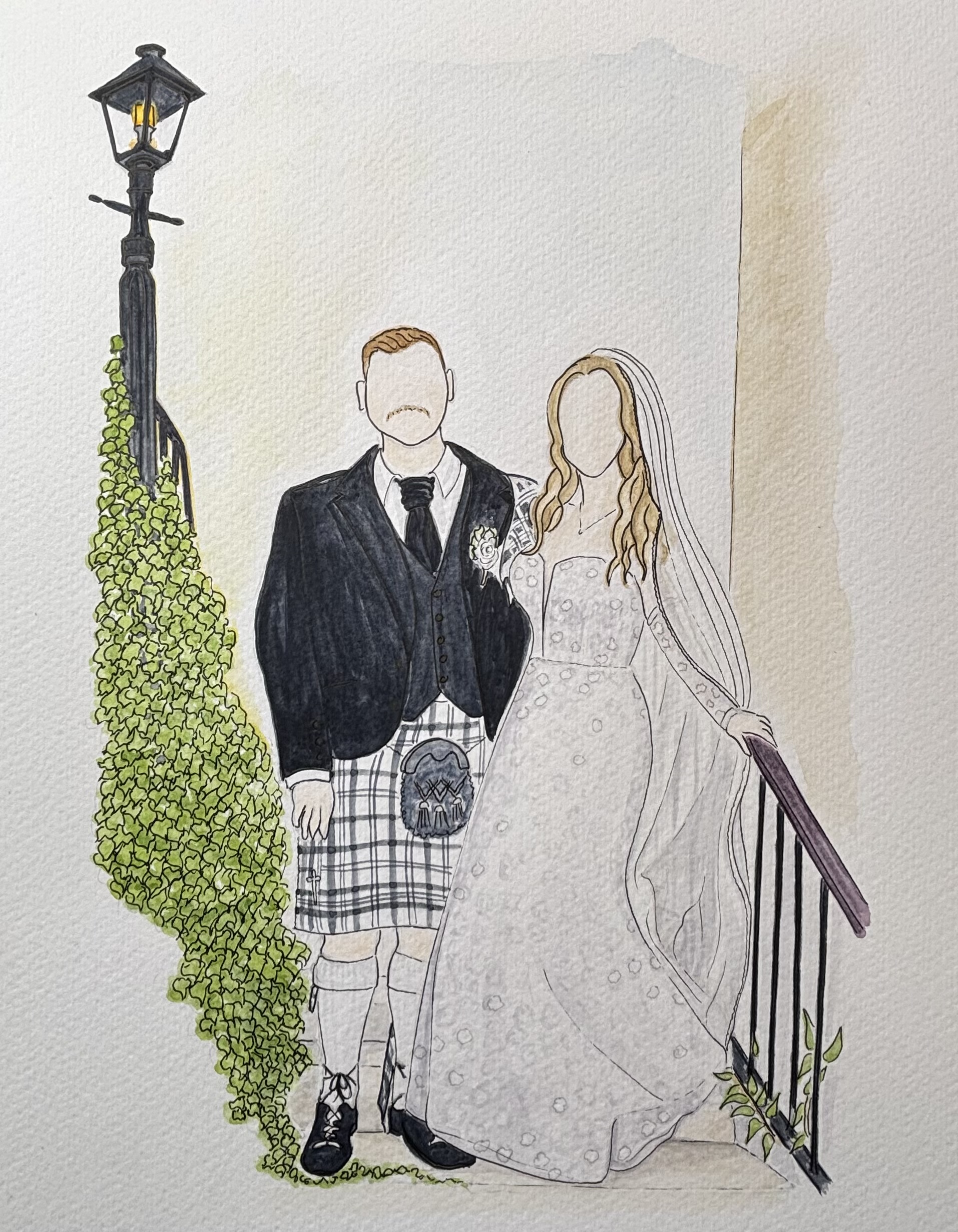 Prices can be found on the Wedding Illustration Prices page, click the button below or to have a chat about your illustration please message me.