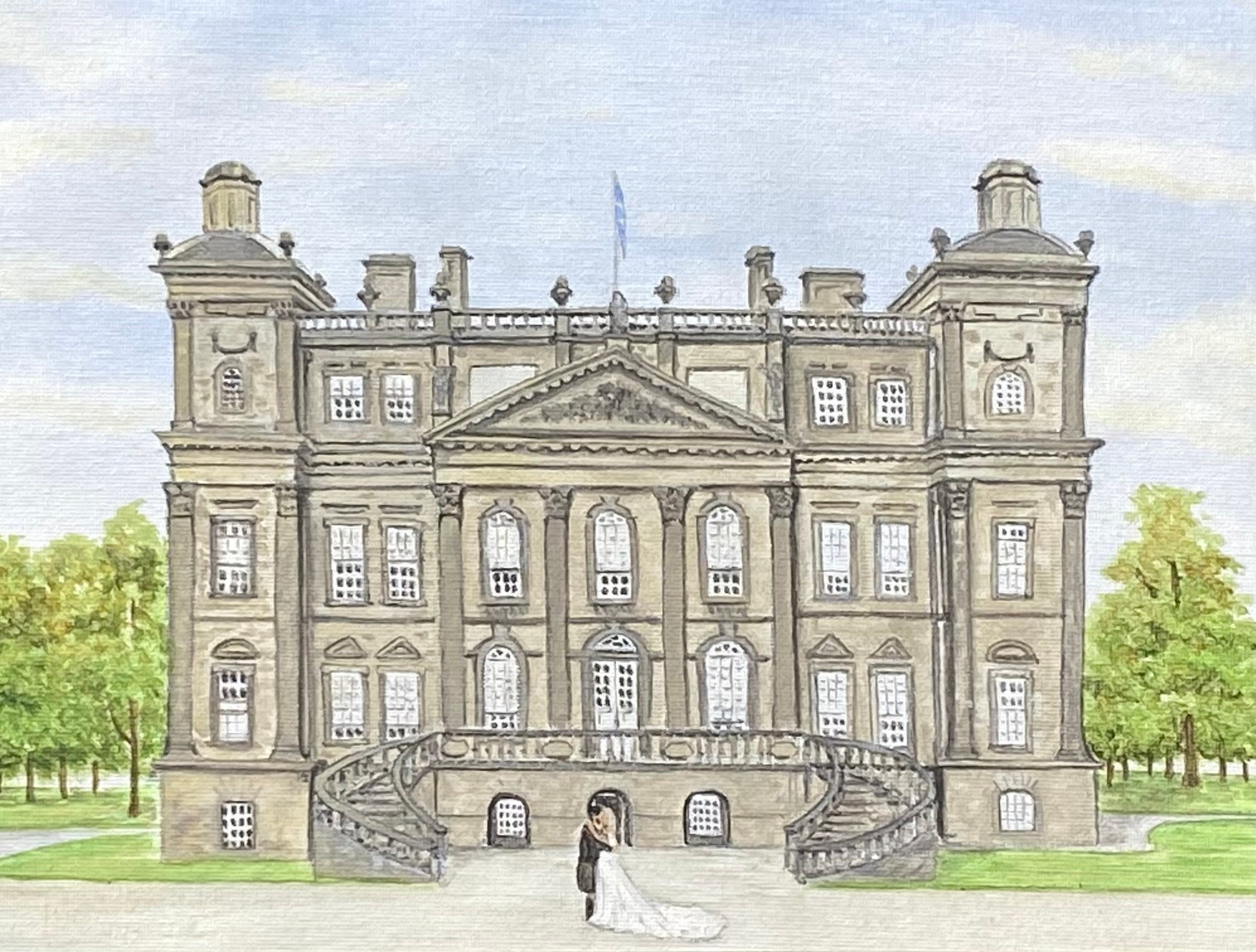 Allow me to capture a couple’s most special celebration with a timeless memento of their Wedding Venue. In addition the bridal couple can be included in the illustration in a unique style.